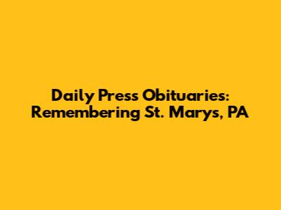 Navigating the Daily Press Obituaries and Honoring Lives in St. Marys, PA
